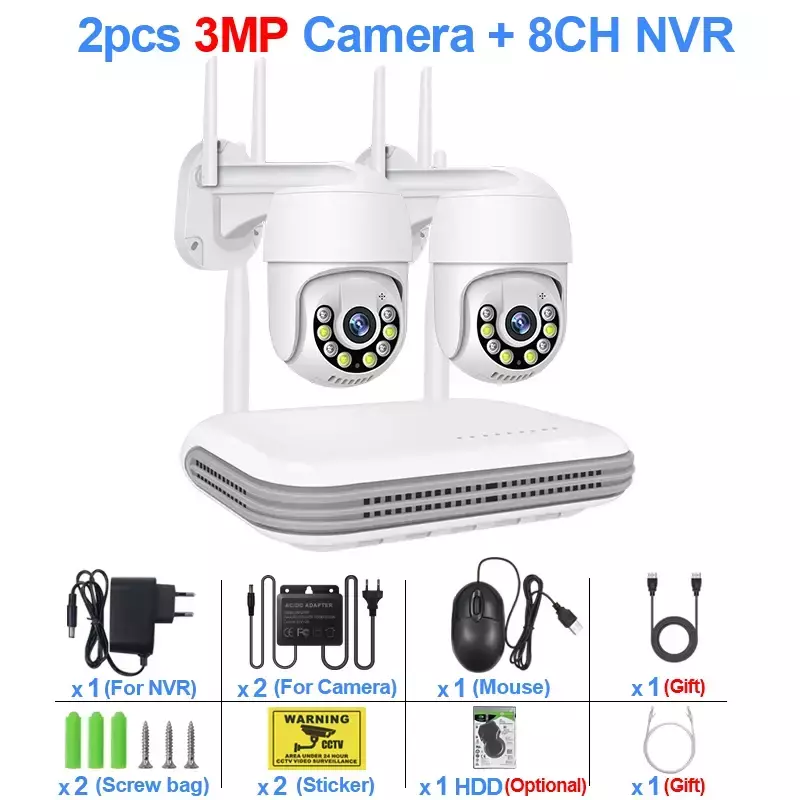 CFTV wifi 2 Câmeras 3MP Sem Fio - Smar 8ch PTZ