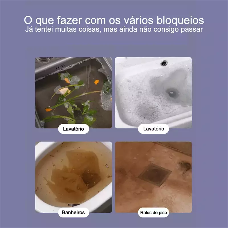 - Eficiência comprovada: desentope rapidamente mesmo bloqueios difíceis.