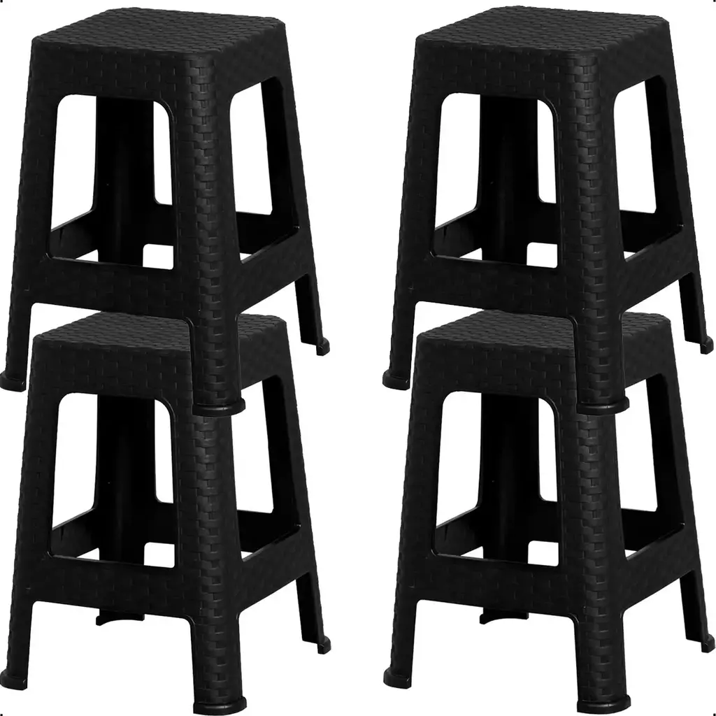 Leves e Empilháveis: Facilite seu armazenamento! As banquetas podem ser empilhadas, ocupando pouco espaço quando não estão em uso.